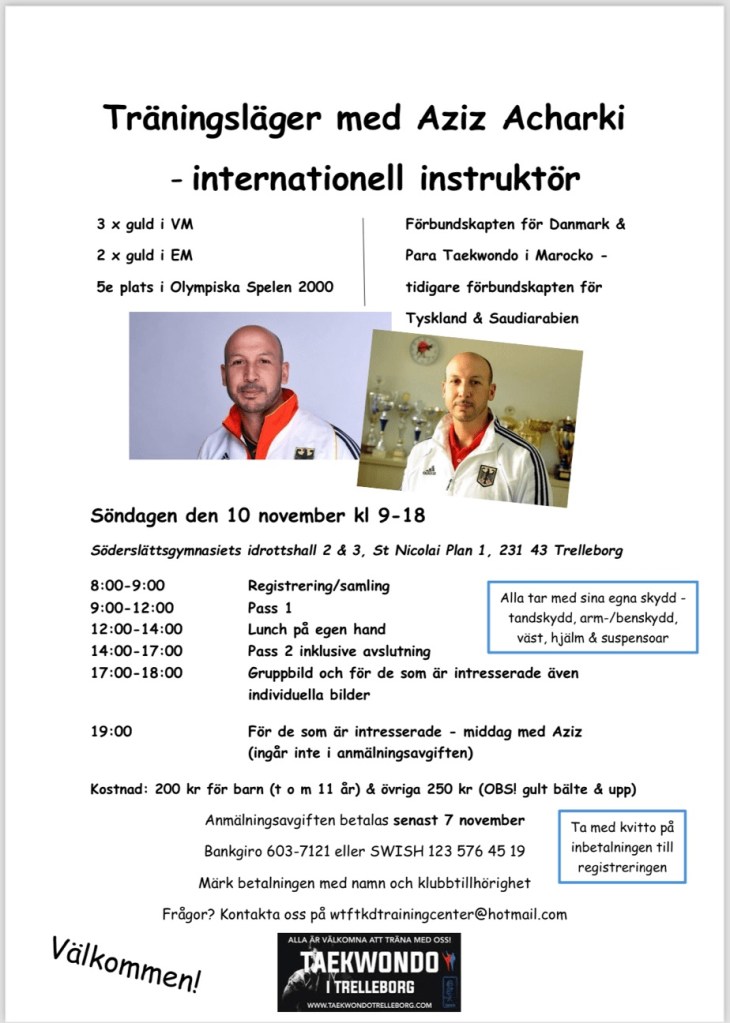 Träningsläger den 10 november- välkomna att anmäla er! wtftkdtrainingcenter@hotmail.com